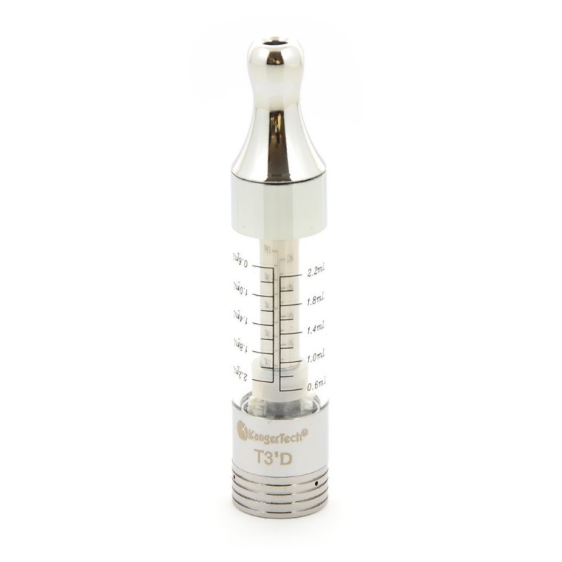 Le clearomiseur Kanger T3 D est une version améliorée du clearomiseur T3 S. Il a une meilleure finition que son prédécesseur T3 S et gagne en termes de qualité de vape et de fabrication. Le clearomiseur T3 D est désormais équipé des mèches à double résistance (Dual Coil) de 1.5 Ohms démontables pour une vapeur plus chaude et plus abondante.